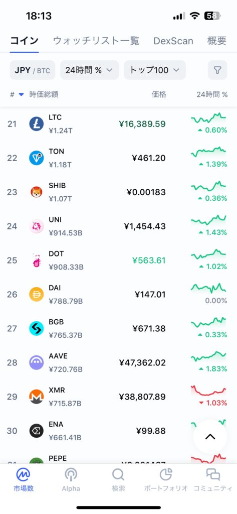 | SHIB | ¥0.0018 | 46,000,000 | ¥84,180 |