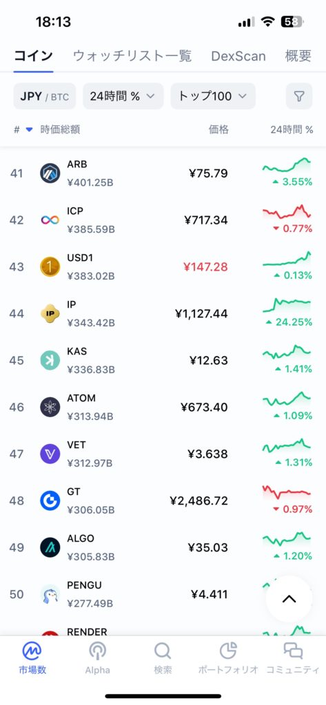 | MATIC | ¥41 | 1,145 | ¥47,037 |